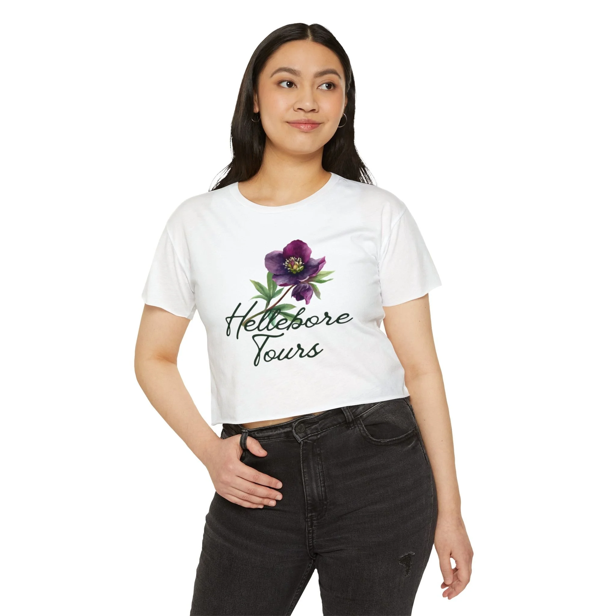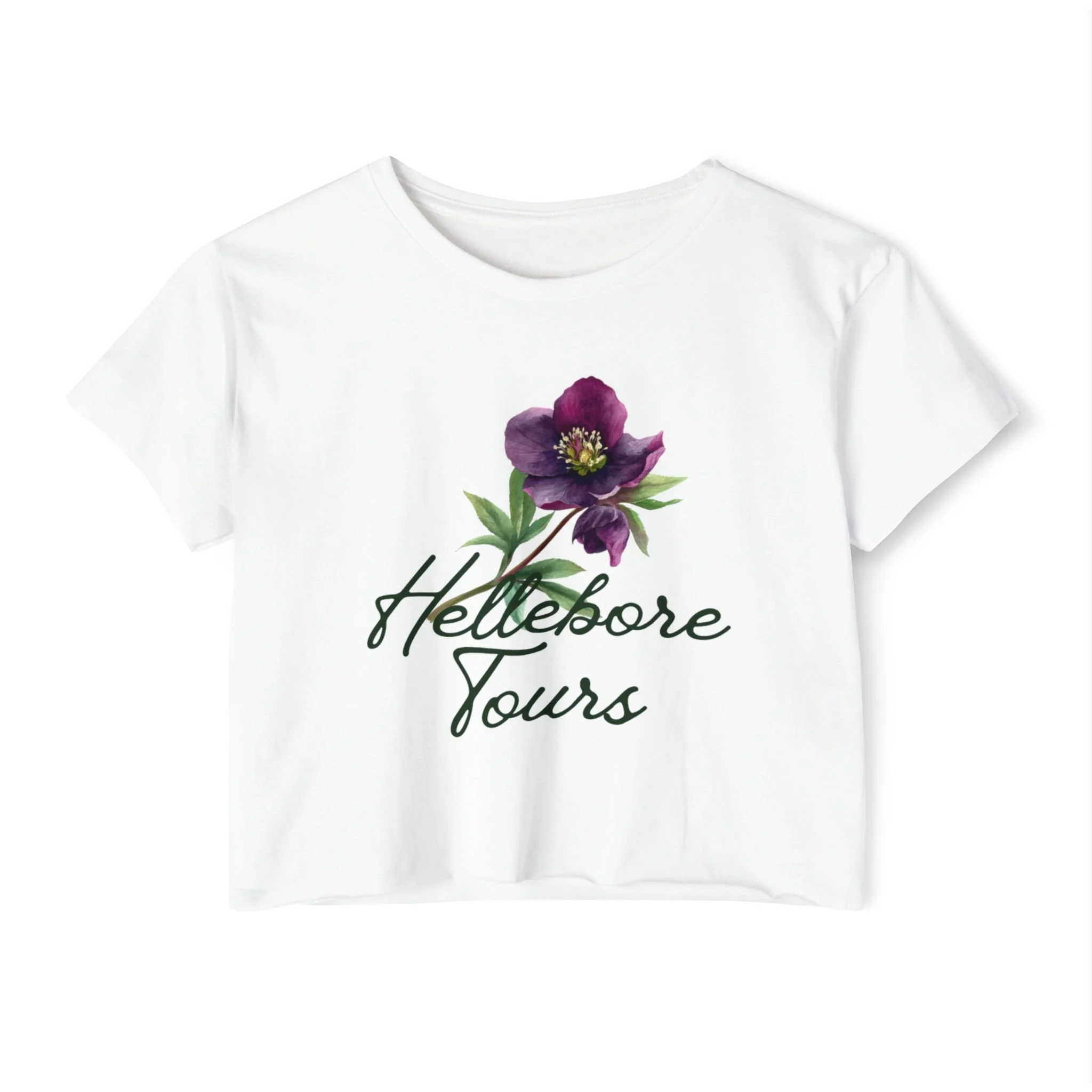 Hellebore Tours Floral Crop Top — "We'd love to have you for breakfast, lunch, or dinner!"